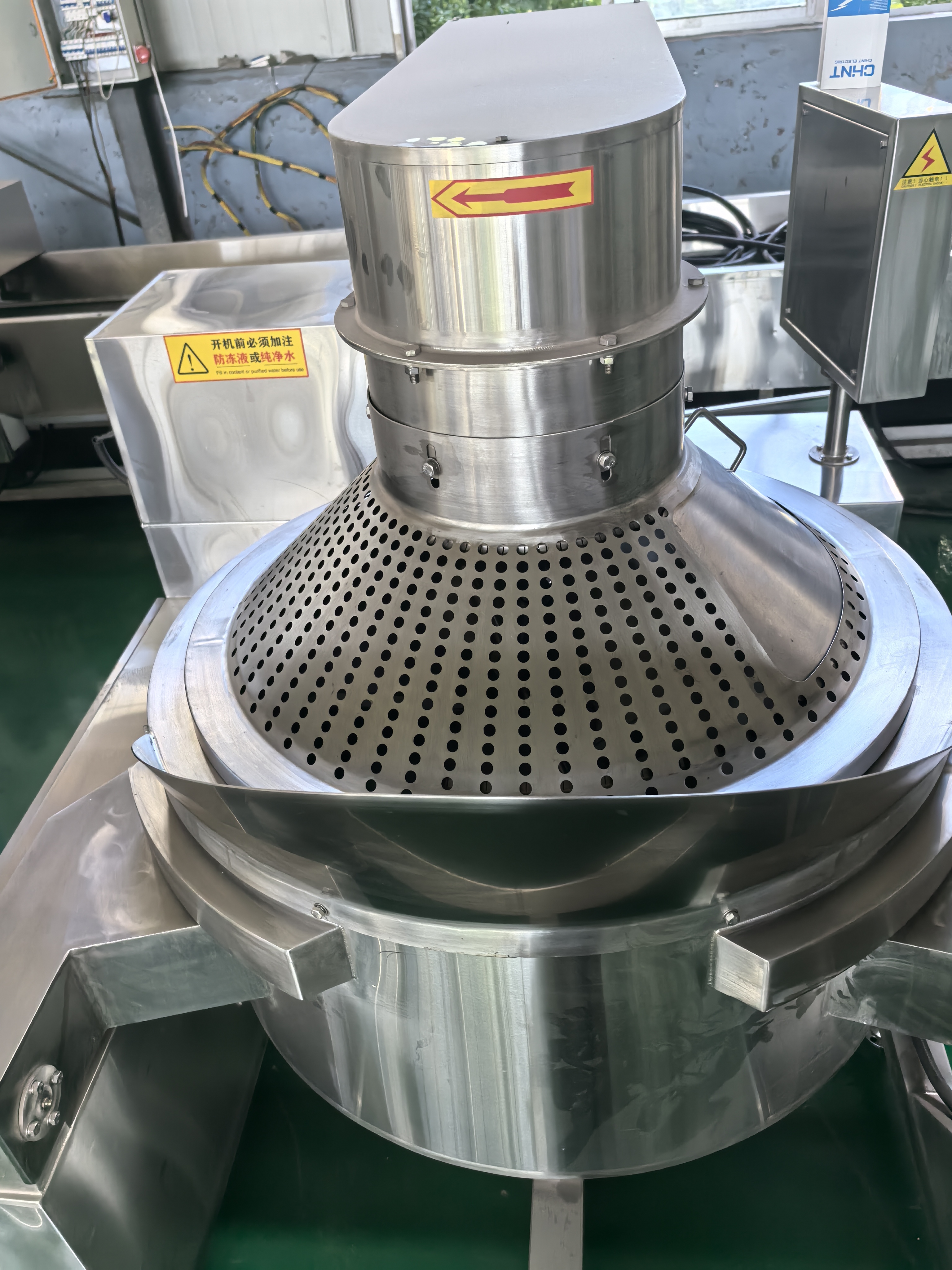 1) 팝콘기 내담은 일본 독자 장쑤성 이싱 베이하이에서 냉간 스탬핑을 한 내담으로, 내담은 순수 304 스테인리스 스틸 재질이며, 솥 몸체의 지름 900mm, 깊이 450mm, 용적 200L이다.