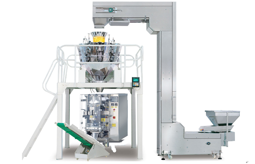 자동 계량 포장 시스템의 세트 ① 충격 Z형 재료 리프팅 장비 ② 컴퓨터의 무게 측정 (복합계량기) ③ 자동 수직 포장 장비 ④ 유지 보수 작업 플랫폼 ⑤ 배출컨베어