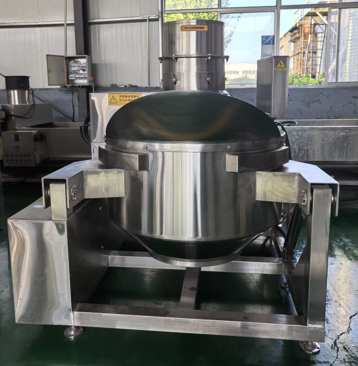 1) 팝콘기 내담은 일본 독자 장쑤성 이싱 베이하이에서 냉간 스탬핑을 한 내담으로, 내담은 순수 304 스테인리스 스틸 재질이며, 솥 몸체의 지름 900mm, 깊이 450mm, 용적 200L이다.